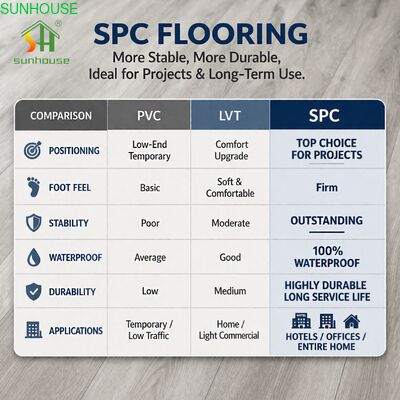Entwickelt für Projektunternehmer, Immobilienentwickler und regionale Distributoren, die sich keine Bodenbelagsausfälle während des Baus leisten können, kombiniert Huiju SPC Rigid Core Flooring eine hochdichte Stein-Kunststoff-Basis mit einem Präzisions-Klick-Verriegelungsprofil in fünf Dickenoptionen – 4,0, 4,5, 5,0, 6,0 und 6,5 mm. Ob die Aufgabe eine leichte Wohnplanke oder eine 0,7 mm starke Nutzschichtplatte für schwere gewerbliche Beanspruchung der Klasse 42 erfordert, ein einziger Lieferant deckt die gesamte Spezifikationsbandbreite ab. Der Holzkern eliminiert jede feuchtigkeitsbedingte Ausfallart, die mit Laminat und Parkett verbunden ist, während die Brandklassifizierung Bfl-s1 und die optionale Rutschfestigkeit R10/R11 das Produkt für Gebäudetypen öffnen, bei denen Standard-Vinylböden nicht spezifiziert werden können. Fünflagige Exportkartons mit vollständiger fotografischer Ladungsdokumentation reduzieren Verzögerungen bei der Hafeninspektion und Versicherungsstreitigkeiten bei internationalen Sendungen.