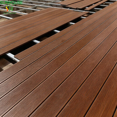 Diese 146x24mm vierkammerige Hohl-WPC-Terrassendiele verfügt über ein doppelseitiges, wendbares Design, das sie von herkömmlichen einseitigen Outdoor-Terrassendielen unterscheidet. Beide Seiten der Diele sind mit einer vollflächigen 3D-Prägung versehen, was bedeutet, dass die Diele umgedreht und neu verlegt werden kann, wenn die primäre Oberfläche Verschleißerscheinungen aufweist – wodurch die funktionale Lebensdauer effektiv verlängert wird, ohne das Terrassenmaterial ersetzen zu müssen. Für Objektverwalter, Resortbetreiber und Bauunternehmer, die stark frequentierte Außenbereiche betreiben, bedeutet dies eine direkte Senkung der langfristigen Kosten für den Austausch von Bodenbelägen pro Quadratmeter.